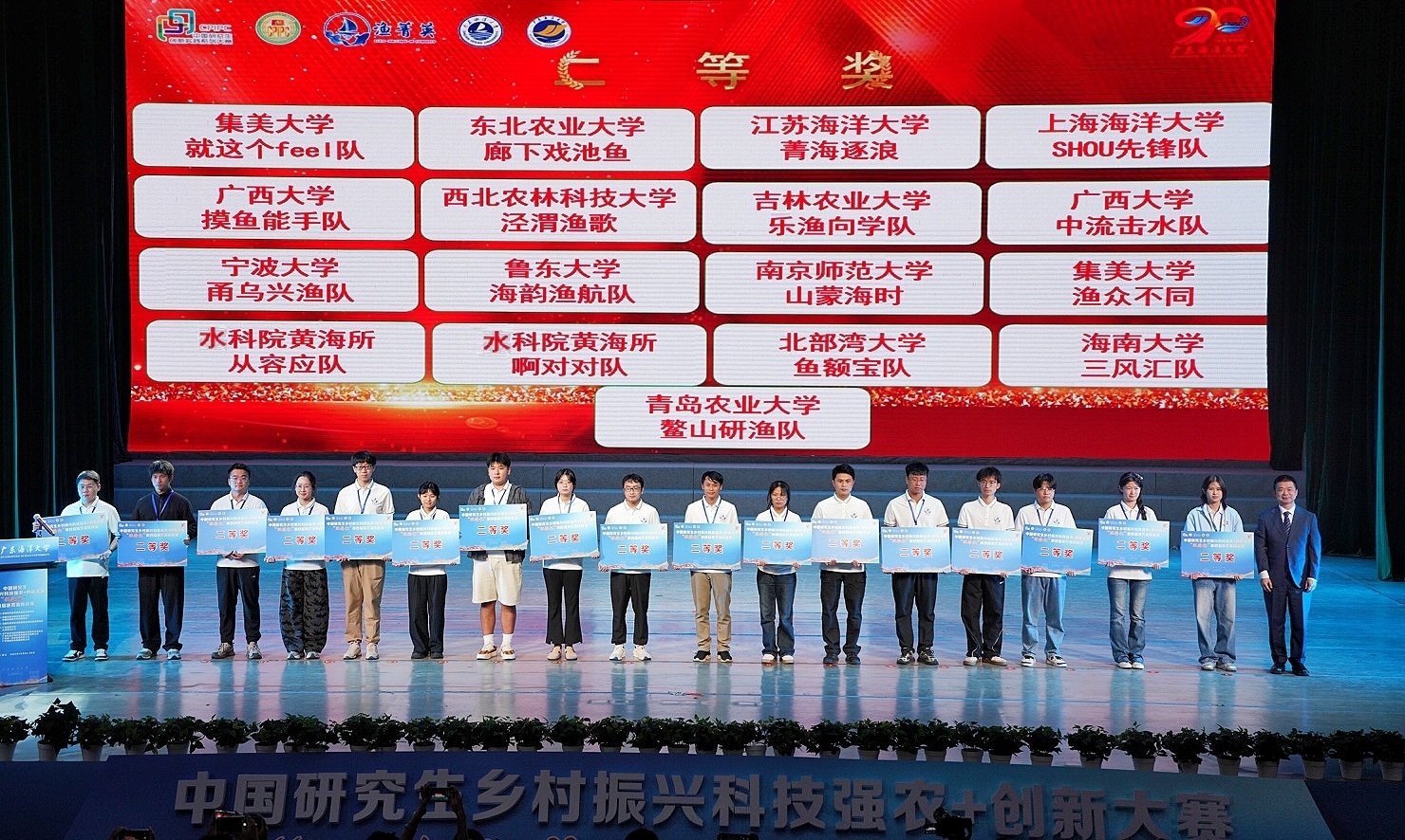 近日中国研究生乡村振兴科技强农+创新大赛“旺海杯”第四届渔菁英挑战赛决赛,在湛江广东海洋大学顺利收官。由我校水产学院研究生姜雨璐、张燕玲、张哲文组成的“海韵渔航队”荣获二等奖,李明珠、刘雅琼获评优秀指导教师。