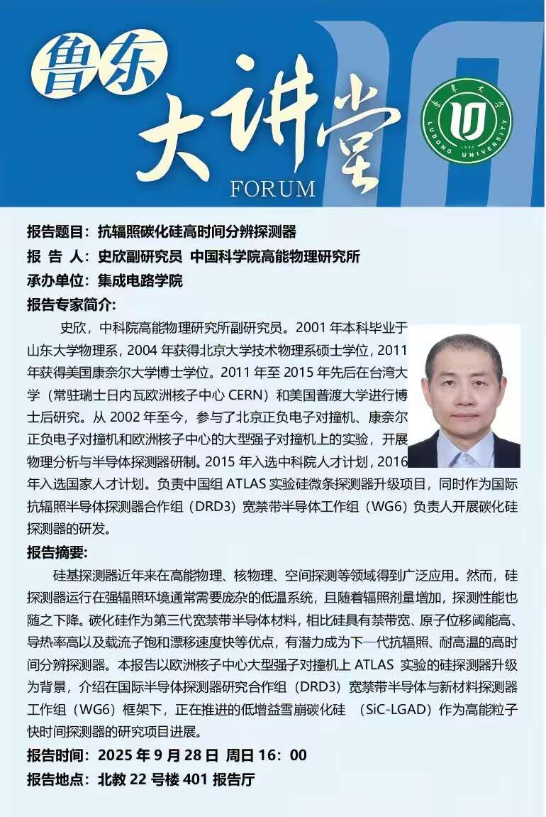 鲁东大讲堂|集成电路学院:抗辐照碳化硅高时间分辨探测器