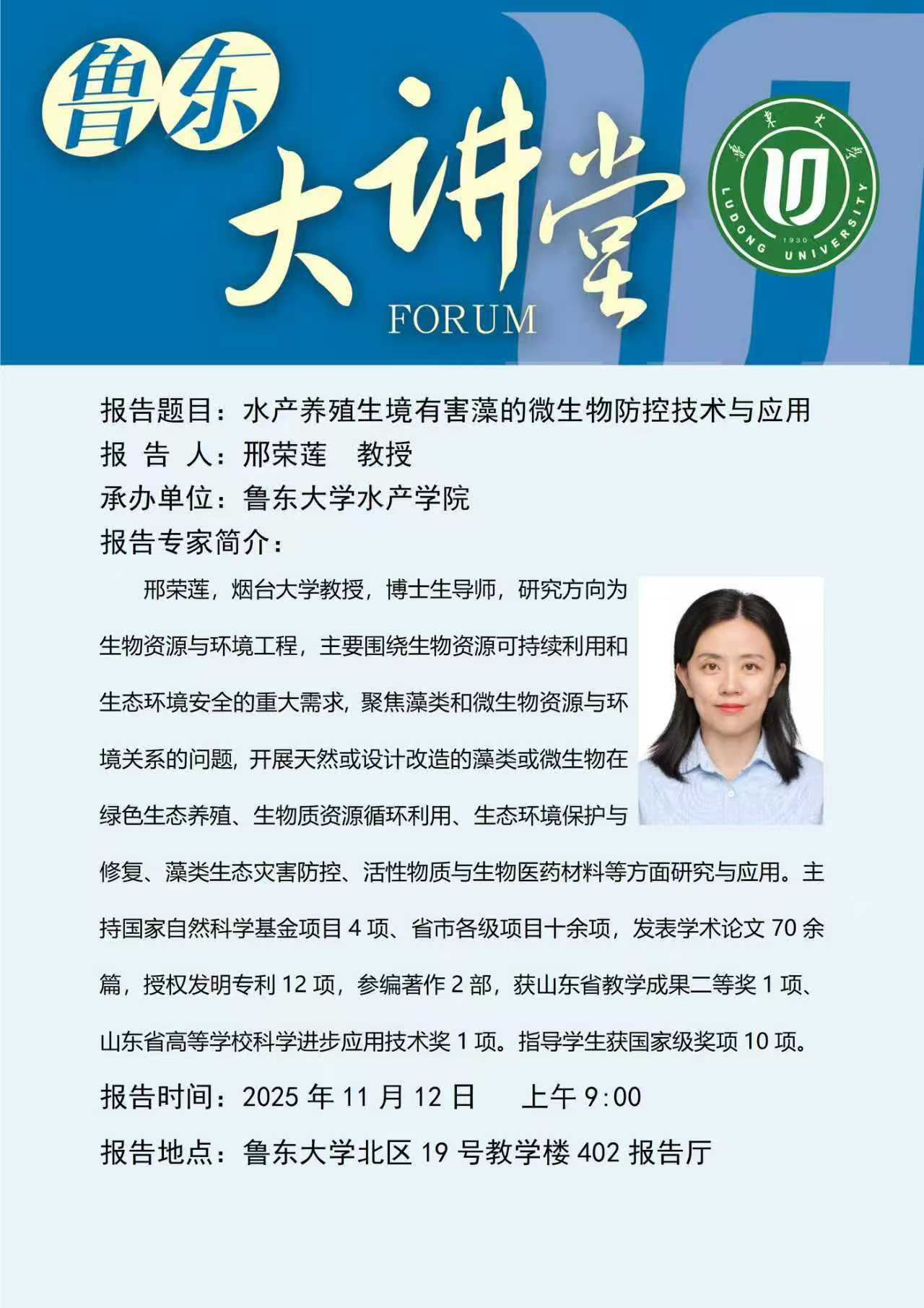 鲁东大讲堂|水产学院:水产养殖生境有害藻的微生物防控技术与应用