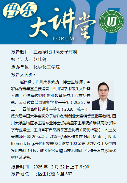 鲁东大讲堂|化学化工学院:血液净化用高分子材料