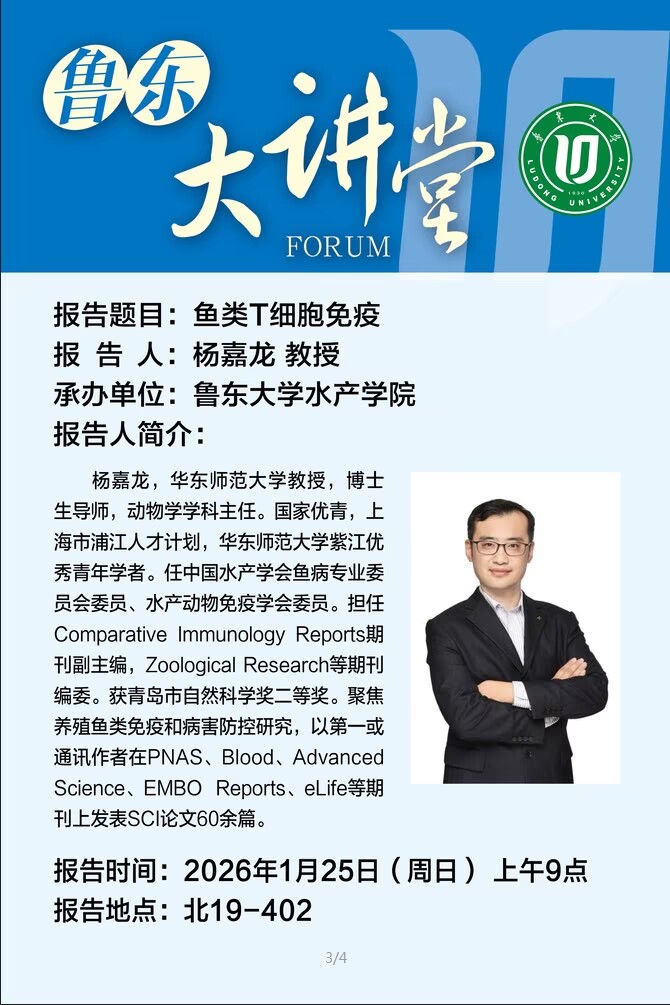 鲁东大讲堂|水产学院:鱼类T细胞免疫