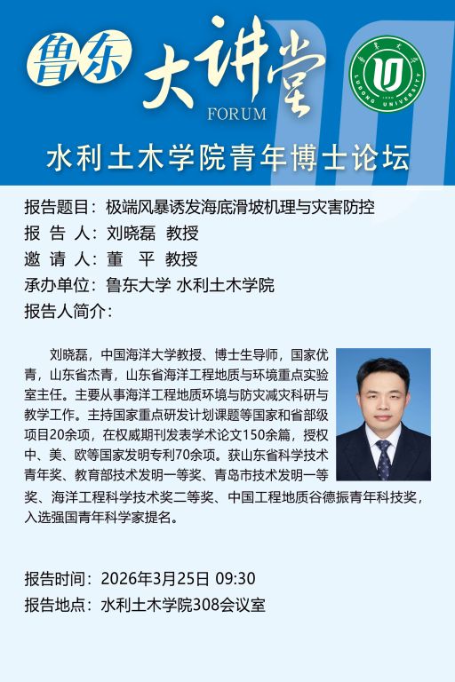 鲁东大讲堂|水利土木学院: 极端风暴诱发海底滑坡机理与灾害防控